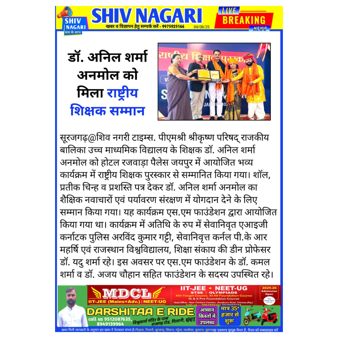 राष्ट्रीय शिक्षक पुरस्कार 2025
